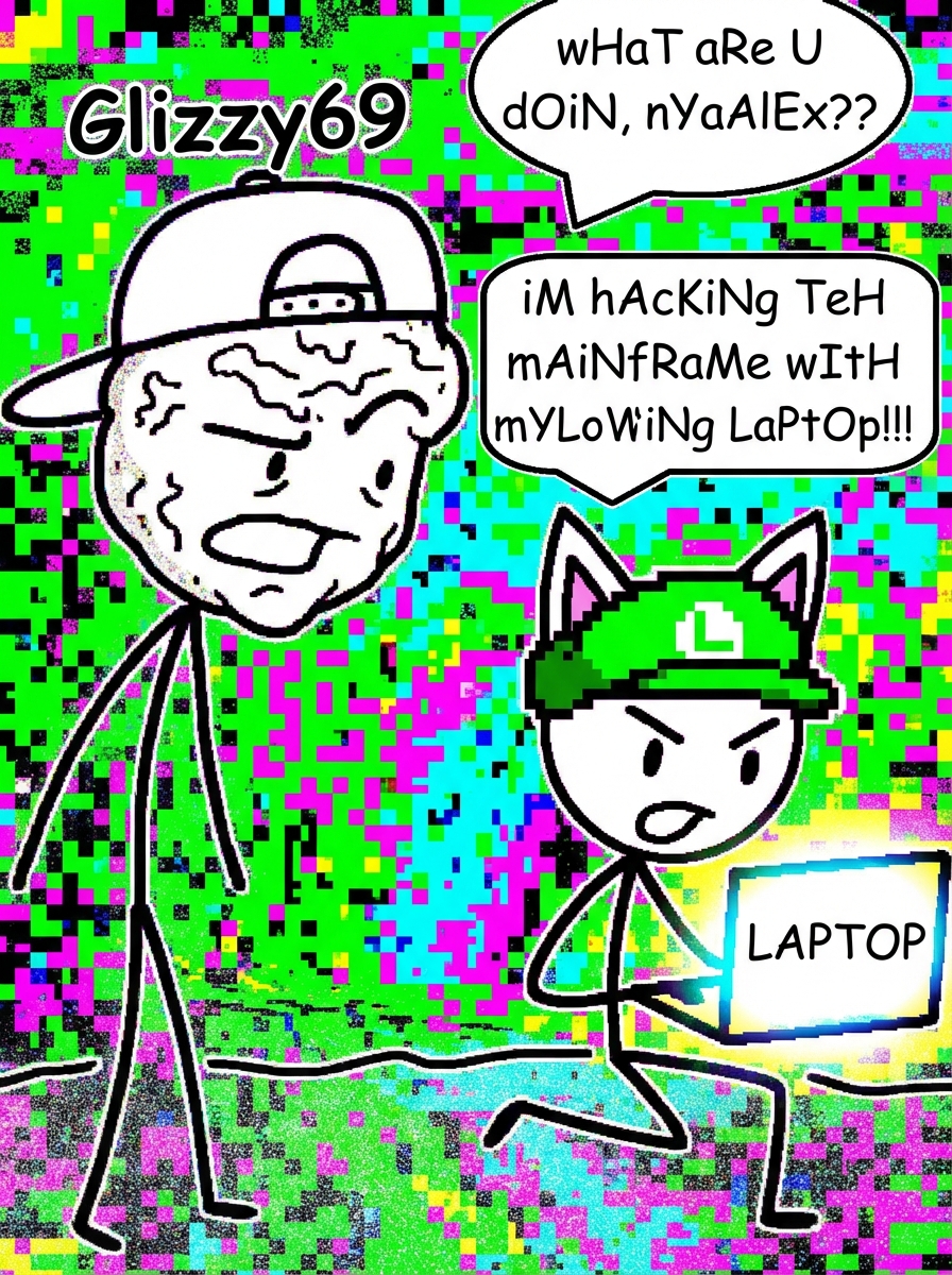 glizzy: i need help with the cyber security. nyaalex: i am here. i have the cat ears and the luigi hat. i am the cyber freak.